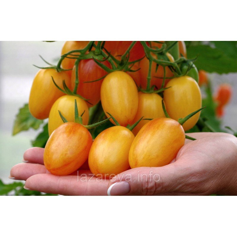 Уявіть собі золоту розсип ароматних томатів, яку ви збираєте вже за три місяці після посіву. Кожен плід — унікальний: елегантна витягнута форма, насичений жовтий колір з грайливими жовтогарячими смужками, вагою на 35-45 г. Вони мають ефектний вигляд на грядку, у кошику та на столі, перетворюючи звичайну трапезу на справжнє свято кольору та смаку.