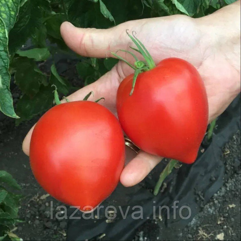 Характеристики: Тип рослини: Індетермінантний (з необмеженим ростом), висока сила росту. Термін дозрівання: Ранньостиглий, 95-105 днів. Плоди: серцеподібні, середньої щільності, масою 180-220 г. Колір насичений червоний, без зеленої плями біля плодоніжки. Смак: Гармонійно солодкий з легкою кислинкою, приємний і соковитий. Використання: Плоди підходять для свіжого споживання, салатів, консервації та переробки. Стійкість до хвороб: Висока стійкість до фузаріозного в’янення, вертицильозу, вірусу тютюнової мозаїки та кладоспоріозу. Врожайність: До 6-8 кг з однієї рослини за правильного догляду.