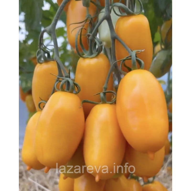 Томати рівномірної циліндричної форми з характерним “носиком”, масою 60–70 г, інтенсивно-оранжевого кольору завдяки підвищеному вмісту бета-каротину. М’якоть щільна, м’ясиста, шкірка гладенька й міцна, що забезпечує зручність при транспортуванні та ідеально підходить для консервування.