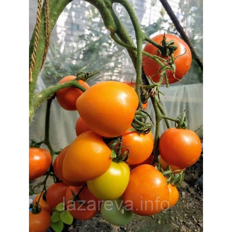 Особливу увагу варто звернути на яскраві, золотисто-оранжеві плоди з елегантним «носиком». Кожне суцвіття несе 5-6 плодів, вага яких варіюється від 130 до 140 грамів, а за сприятливих умов плоди можуть досягати вражаючих 200-230 грамів! Плоди гладкі, ідеально вирівняні за розміром, спочатку світло-зелені, а потім перетворюються на насичені золотисто-оранжеві, що тішать око і апетит.