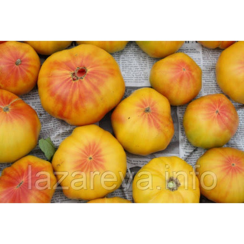 - Унікальне забарвлення: двоколірні томати — жовто-червоні з яскравішими відтінками на верхній частині.